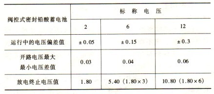 (1)閥控電池在運行中每只單體電池電壓偏差值及放電終止電壓值應符合表3-2的規定;表3-2    閥控蓄電池在運行中電壓偏差值及放電終止電壓值的規定    單位:V
