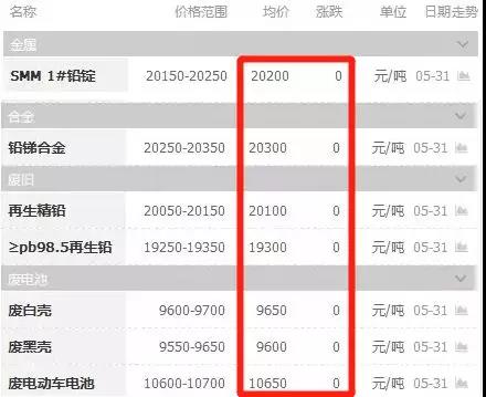 5-31日 鉛價行情