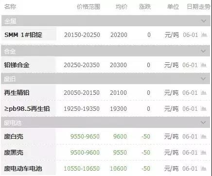 6-1日 鉛價行情
